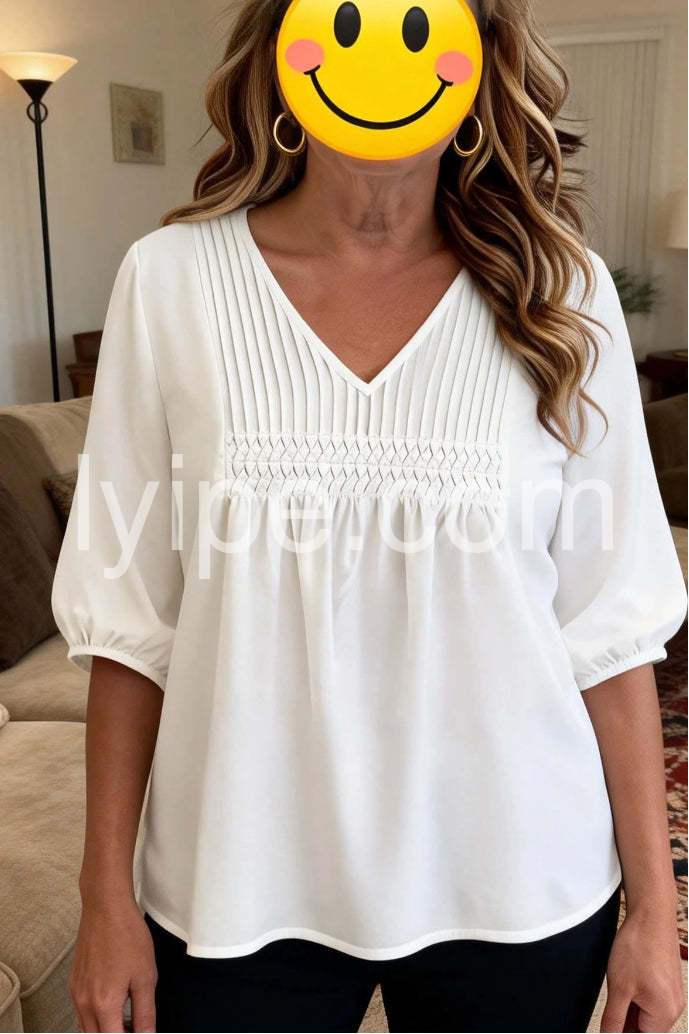 Elevate your everyday wardrobe with this timeless white V-neck top. Crafted from quality fabric, it offers a flattering silhouette that transitions seamlessly from casual to professional settings. The classic V-neckline provides a refined touch, while the plain design ensures versatile styling with virtually any piece in your closet. Perfect for layering or wearing solo, this essential staple delivers understated elegance and reliable comfort for year-round wear.