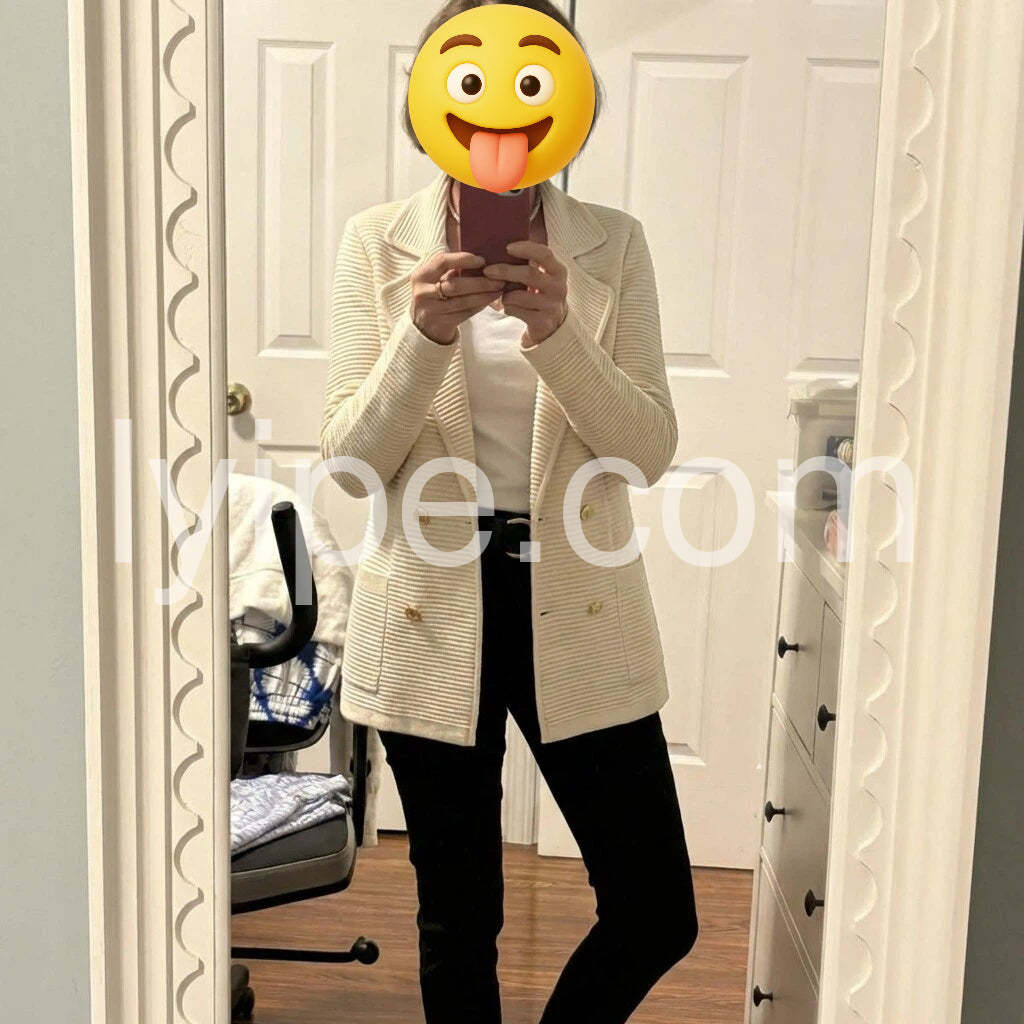 The ribbed texture is gorgeous and makes it look much more expensive than it is. The gold buttons add such a classy touch. Fit is true to size and very flattering.